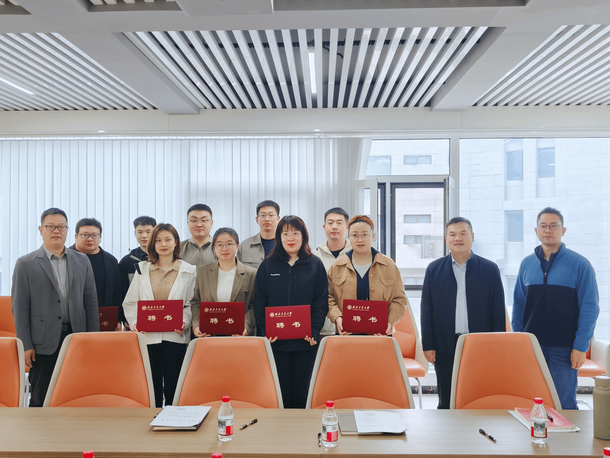 段利兵与新认定导师签署了研究生导师岗位责任书。谈话小组向新认定导师颁发聘书并与新认定导师合影留念。