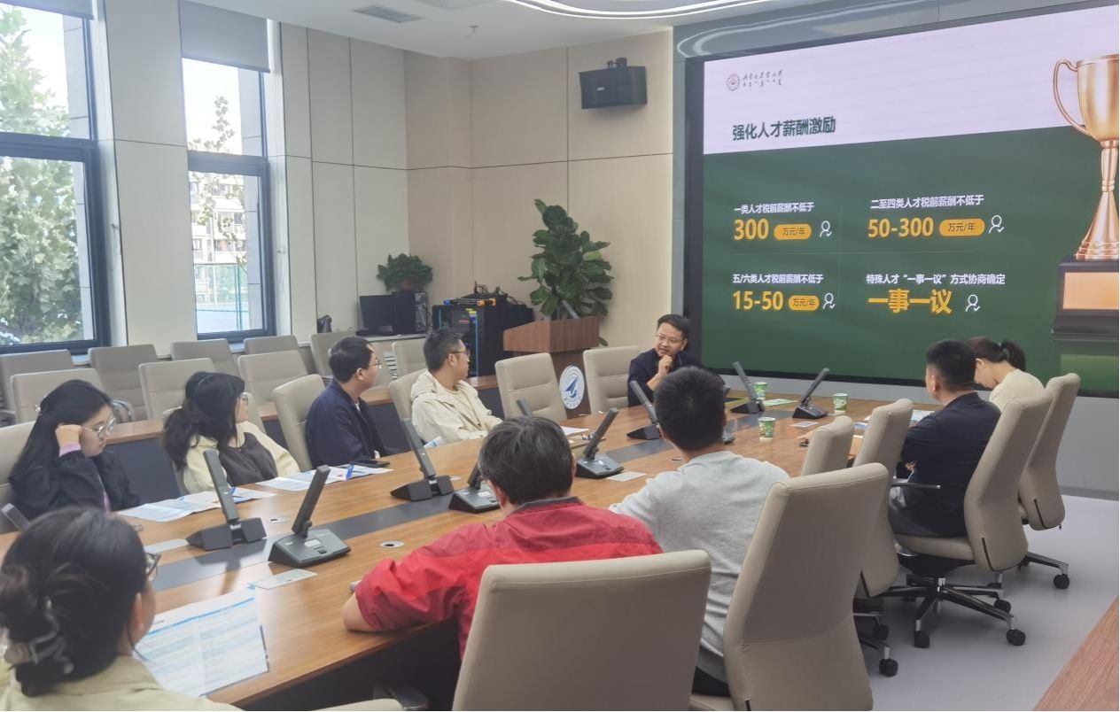 调研,并在B107会议室开展专场招聘宣讲会,以优厚人才政策广纳贤才。学院业务主管田孝敏及十余名相关专业博士生参加会议。会议由田孝敏主持。